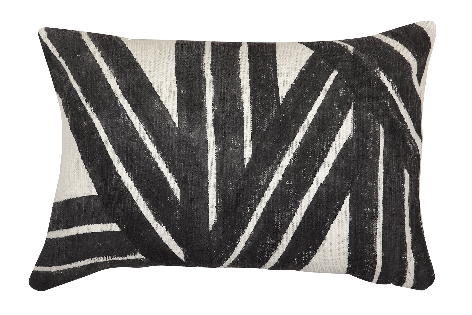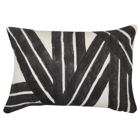 Featuring bold, angled stripes and a neutral background, our Black Stripes Rectangular Pillow is the perfect complement to your sofa or bed!