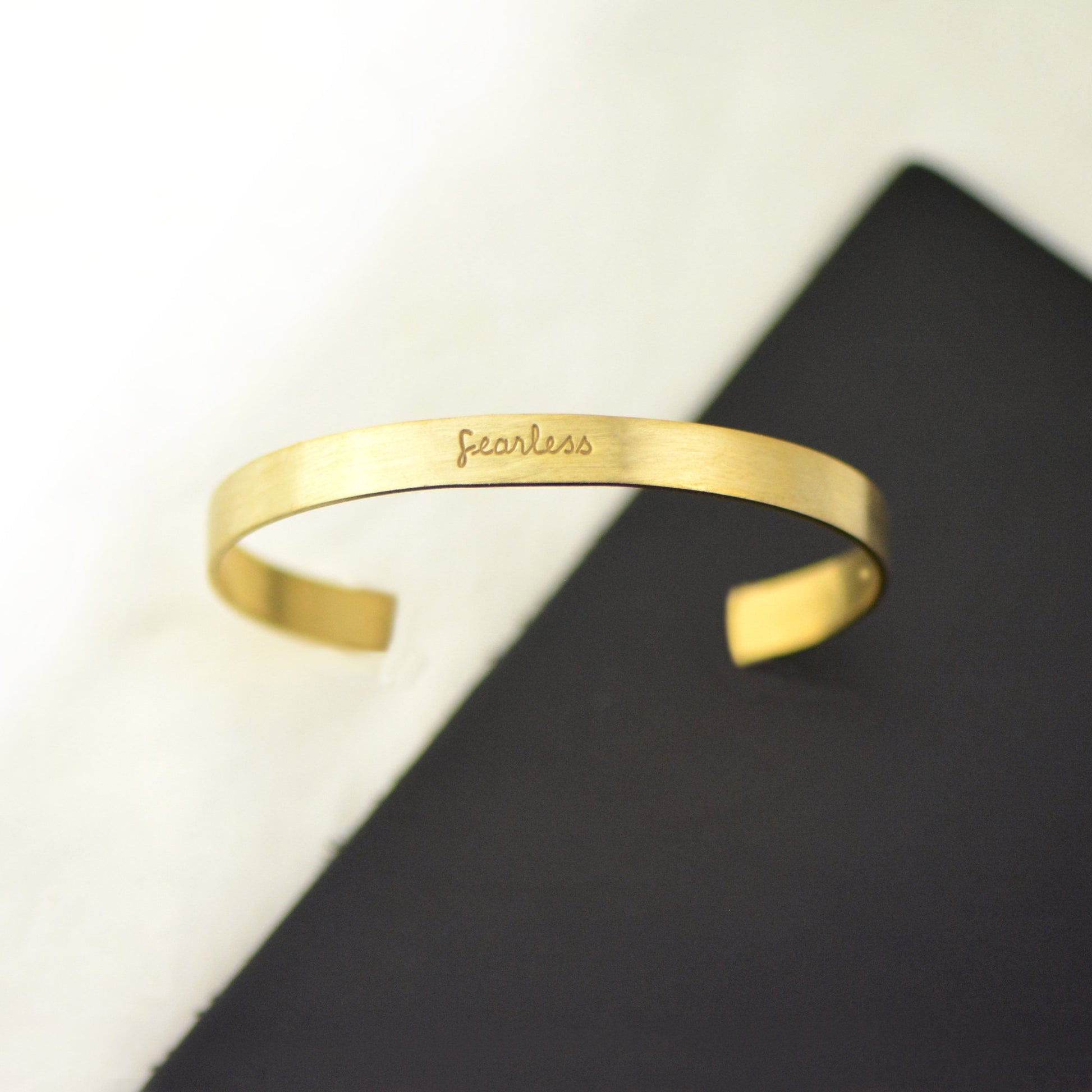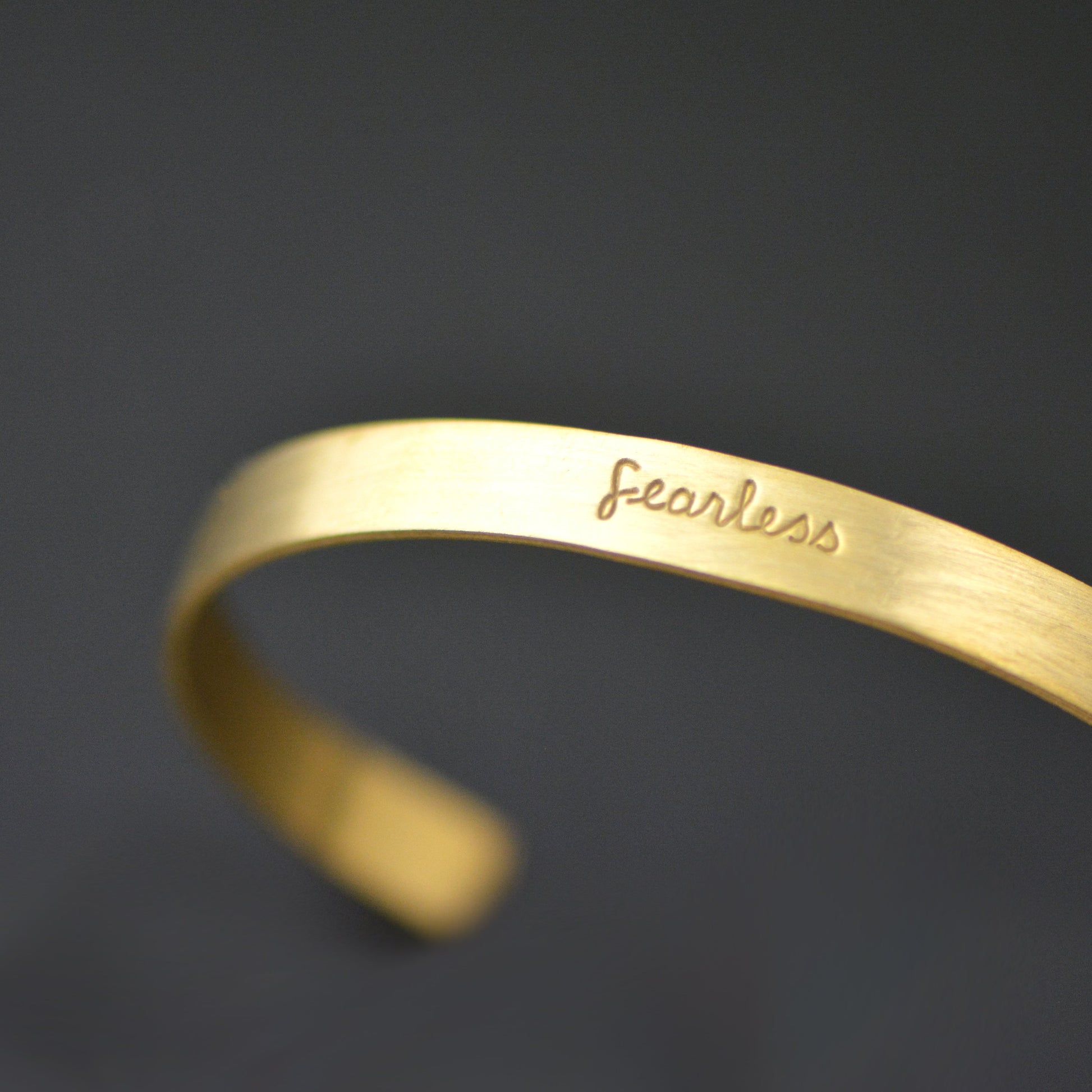 Our Fearless Inspirational Metal Bracelet is ready to remind you that you always have courage, even on the days that you don't feel like you do.