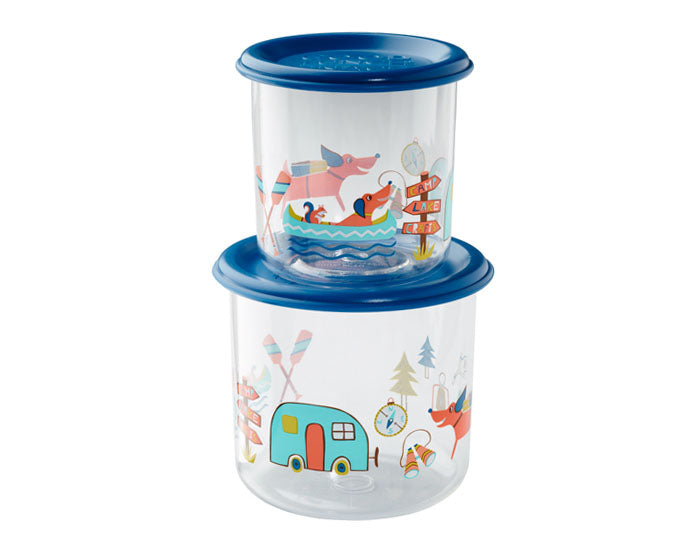 It's camping time! Sized just right for lunches large or small, in our Happy Camper Large Container Set food stays fresh and tasty with a dose of fun! These clear, durable, leak-proof and safe containers are light and stackable for compact storage and include two convenient sizes for easy snack-packing. What's even better? These containers are BPA-free, odor, stain, shatter and scratch-resistant.