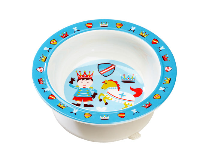 Ready to inspire bravery, our Little Prince Suction Bowl has arrived gallantly and stylishly. Finished with a removable suction base at the bottom of the plate to help keep the plate in place on most smooth surfaces, this little bowl is sized just right for cereal, soup, fruit, snacks and lots of other yummy treats!