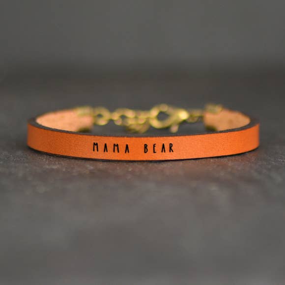 - This bracelet reads "MAMA BEAR" in capital lettering.
