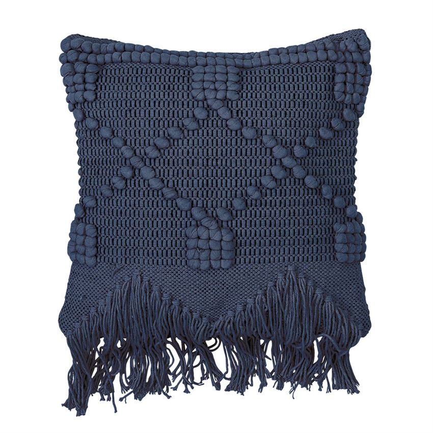 With distinct texture and pattern, our Navy Boho Pillow is finished off with a modern take on fringe.