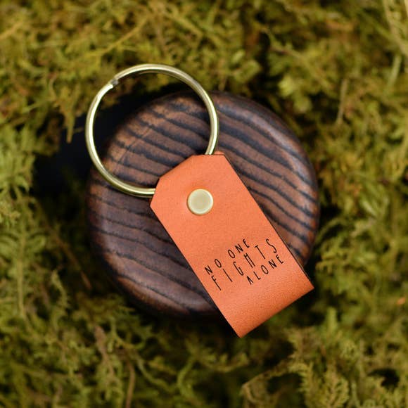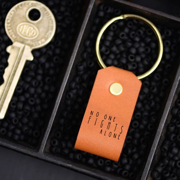 Our No One Fights Alone Inspirational Leather Keychain is an uplifting gift for you or a friend.
